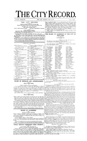 The City Record newspaper publishes notices which includes but is not limited to: public hearings and meetings, public auctions and sales, solicitations and awards and official rules proposed and adopted by city agencies. This is the City Record Newspaper for May 21, 1914.