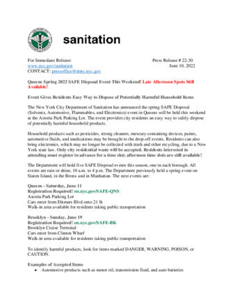 - Queens Spring 2022 SAFE Disposal Event This Weekend!