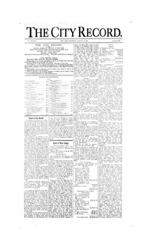 The City Record newspaper publishes notices which includes but is not limited to: public hearings and meetings, public auctions and sales, solicitations and awards and official rules proposed and adopted by city agencies. This is the City Record Newspaper for August 11, 1910.