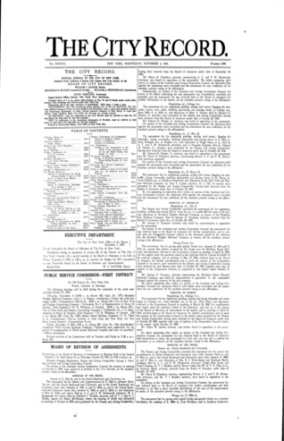 The City Record newspaper publishes notices which includes but is not limited to: public hearings and meetings, public auctions and sales, solicitations and awards and official rules proposed and adopted by city agencies. This is the City Record Newspaper for November 02, 1910.