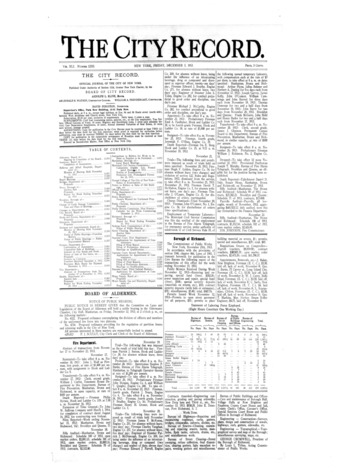 The City Record newspaper publishes notices which includes but is not limited to: public hearings and meetings, public auctions and sales, solicitations and awards and official rules proposed and adopted by city agencies. This is the City Record Newspaper for December 05, 1913.