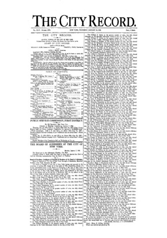 The City Record newspaper publishes notices which includes but is not limited to: public hearings and meetings, public auctions and sales, solicitations and awards and official rules proposed and adopted by city agencies. This is the City Record Newspaper for January 10, 1918.