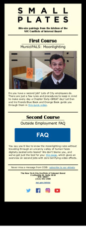 Periodic newsletter containing bite-sized items and media from the New York City Conflicts of Interest Board