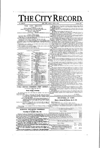 The City Record newspaper publishes notices which includes but is not limited to: public hearings and meetings, public auctions and sales, solicitations and awards and official rules proposed and adopted by city agencies. This is the City Record Newspaper for June 10, 1910 with supplement.