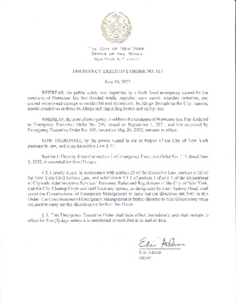 Emergency Executive Order No. 117, extends Emergency Executive Order No. 113, dated June 5, 2022, for five (5) days, if this is related to Hurricane Ida.
