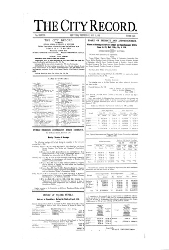 The City Record newspaper publishes notices which includes but is not limited to: public hearings and meetings, public auctions and sales, solicitations and awards and official rules proposed and adopted by city agencies. This is the City Record Newspaper for May 11, 1910.
