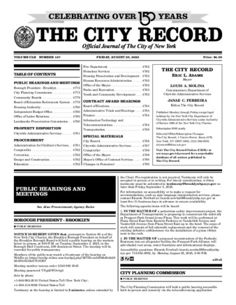 The City Record newspaper publishes notices which includes but is not limited to public hearings and meetings, public auctions and sales, solicitations and awards and official rules proposed and adopted by city agencies.