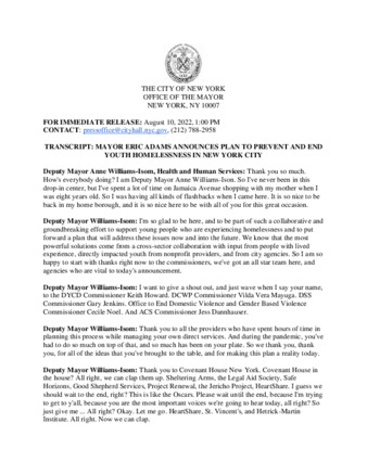 TRANSCRIPT: MAYOR ERIC ADAMS ANNOUNCES PLAN TO PREVENT AND END YOUTH HOMELESSNESS IN NEW YORK CITY