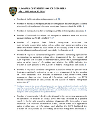 • Summary of Statistics on Civil Immigration Detainers