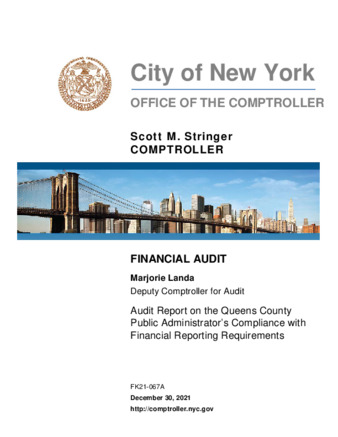 Audit Report on the Queens County Public Administrator’s Compliance with Financial Reporting Requirements