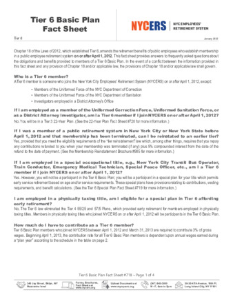 This fact sheet provides answers to frequently asked questions about the obligations and benefits provided to members of a Tier 6 Basic Plan.