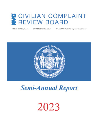 The CCRB Semi-Annual Report contains data on complaint activity, CCRB investigations, the NYPD disciplinary process, CCRB mediations, requests for case reconsideration, video and body-worn cameras, CCRB outreach, and new CCRB initiatives for the preceding January-June.