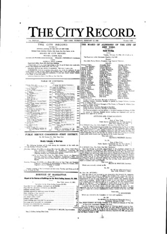 The City Record newspaper publishes notices which includes but is not limited to: public hearings and meetings, public auctions and sales, solicitations and awards and official rules proposed and adopted by city agencies. This is the City Record Newspaper for February 17, 1910.