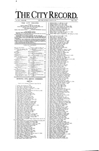 The City Record newspaper publishes notices which includes but is not limited to: public hearings and meetings, public auctions and sales, solicitations and awards and official rules proposed and adopted by city agencies. This is the City Record Newspaper for August 14, 1915.