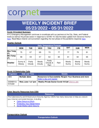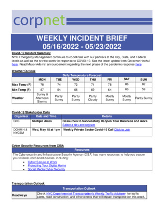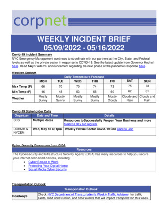 NYCEM CorpNet COVID-19 Weekly Incident Briefs – May 2022