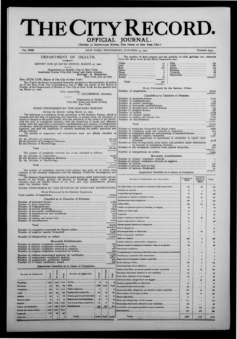 The City Record newspaper publishes notices which includes but is not limited to: public hearings and meetings, public auctions and sales, solicitations and awards and official rules proposed and adopted by city agencies. This is the City Record Newspaper for October 15, 1902.