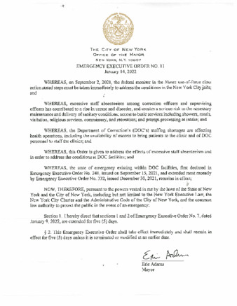 Emergency Executive Order No. 11 extends Emergency Executive Order No. 7, dated January 9, 2022, by 5 days. It is in relation to DOC staffing tours in response to shortages caused by COVID-19.