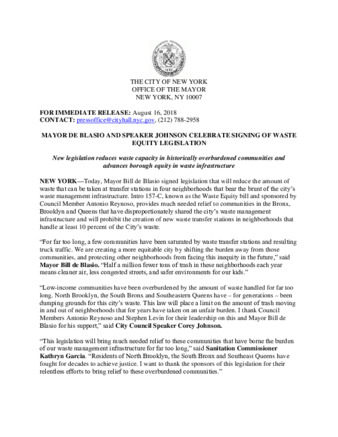 Press Release: MAYOR DE BLASIO AND SPEAKER JOHNSON CELEBRATE SIGNING OF WASTE EQUITY LEGISLATION