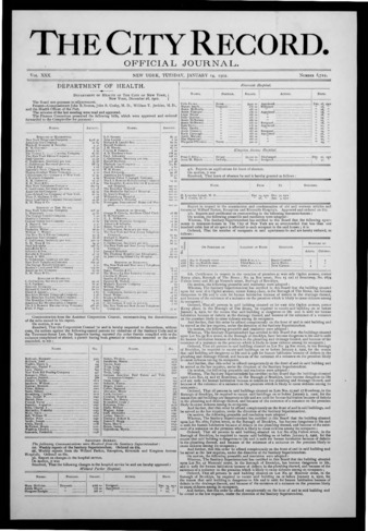 The City Record newspaper publishes notices which includes but is not limited to: public hearings and meetings, public auctions and sales, solicitations and awards and official rules proposed and adopted by city agencies. This is the City Record Newspaper for January 14, 1902.