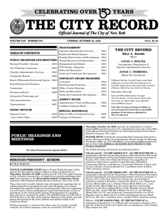 The City Record newspaper publishes notices which includes but is not limited to public hearings and meetings, public auctions and sales, solicitations and awards and official rules proposed and adopted by city agencies.