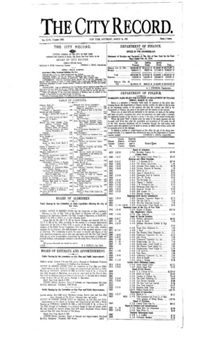 The City Record newspaper publishes notices which includes but is not limited to: public hearings and meetings, public auctions and sales, solicitations and awards and official rules proposed and adopted by city agencies. This is the City Record Newspaper for March 16, 1918.