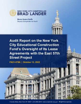 Audit to determine whether the Educational Construction Fund (ECF) had adequate oversight over the lessees’ compliance with the leases and other relevant agreements and that lessees paid ECF in accordance with the terms of the Lease Agreements associated with the East 57th Street project.