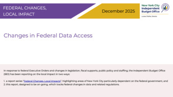 This report outlines how federal data practices have begun to change and how that may impact researchers and policymakers, including IBO. Datasets covered in this report include economic & demographic data, public health & public safety indicators, measures of food insecurity, education statistics