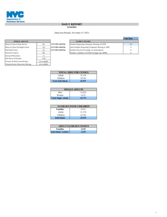 The Daily Shelter Census report contains statistics for the prior calendar day immediately preceding such weekday, excluding holidays. Reports various statisticas such as, but not limited to the number of individuals, families, children (disaggregated).