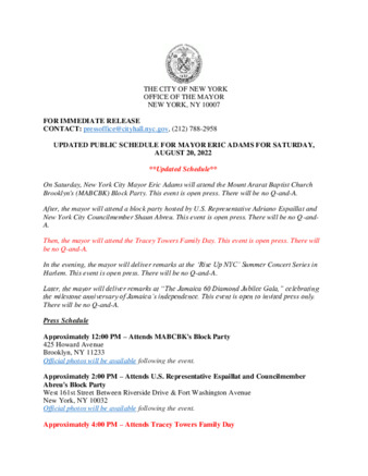 UPDATED PUBLIC SCHEDULE FOR MAYOR ERIC ADAMS FOR SATURDAY, AUGUST 20, 2022