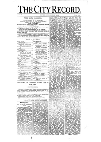 The City Record newspaper publishes notices which includes but is not limited to: public hearings and meetings, public auctions and sales, solicitations and awards and official rules proposed and adopted by city agencies. This is the City Record Newspaper for January 20, 1912.