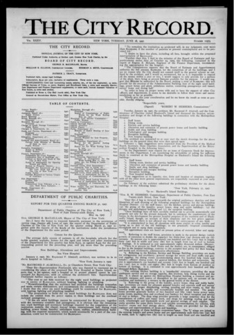 The City Record newspaper publishes notices which includes but is not limited to: public hearings and meetings, public auctions and sales, solicitations and awards and official rules proposed and adopted by city agencies. This is the City Record Newspaper for June 18, 1907.