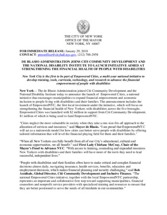 Press Release: DE BLASIO ADMINISTRATION JOINS CITI COMMUNITY DEVELOPMENT AND THE NATIONAL DISABILITY INSTITUTE TO LAUNCH INITIATIVE