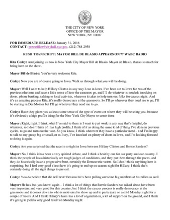 Mayor's Press Release: MAYOR BILL DE BLASIO APPEARS ON 77 WABC RADIO
