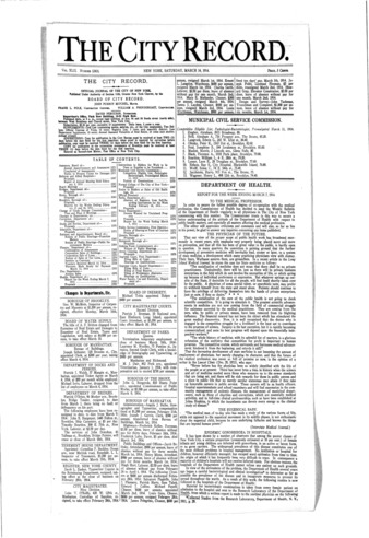 The City Record newspaper publishes notices which includes but is not limited to: public hearings and meetings, public auctions and sales, solicitations and awards and official rules proposed and adopted by city agencies. This is the City Record Newspaper for March 14, 1914.
