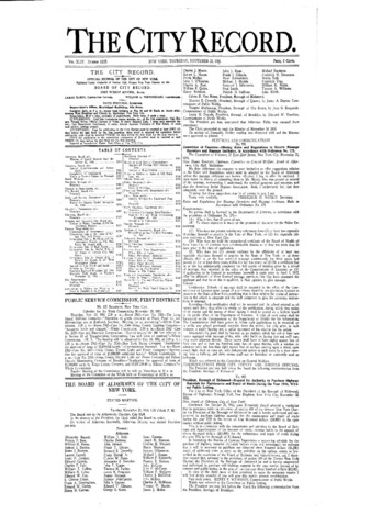 The City Record newspaper publishes notices which includes but is not limited to: public hearings and meetings, public auctions and sales, solicitations and awards and official rules proposed and adopted by city agencies. This is the City Record Newspaper for November 23, 1916.