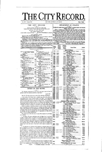 The City Record newspaper publishes notices which includes but is not limited to: public hearings and meetings, public auctions and sales, solicitations and awards and official rules proposed and adopted by city agencies. This is the City Record Newspaper for July 28, 1917.