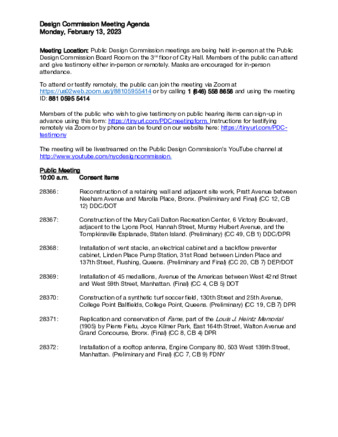 Design Commission Public Meeting Agenda, February 13, 2023