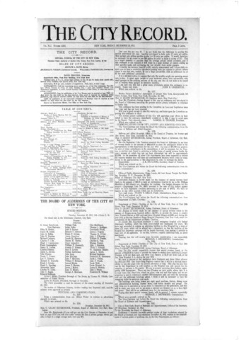 The City Record newspaper publishes notices which includes but is not limited to: public hearings and meetings, public auctions and sales, solicitations and awards and official rules proposed and adopted by city agencies. This is the City Record Newspaper for December 26, 1913.