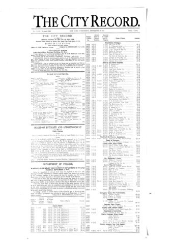 The City Record newspaper publishes notices which includes but is not limited to: public hearings and meetings, public auctions and sales, solicitations and awards and official rules proposed and adopted by city agencies. This is the City Record Newspaper for September 08, 1915.