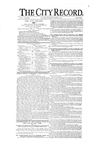 The City Record newspaper publishes notices which includes but is not limited to: public hearings and meetings, public auctions and sales, solicitations and awards and official rules proposed and adopted by city agencies. This is the City Record Newspaper for November 13, 1918.