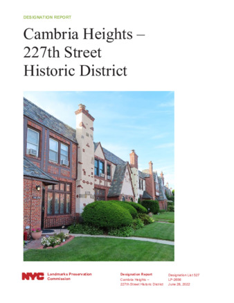 Framing 227th Street between 116th Avenue and Linden Boulevard in southeastern Queens, the Cambria Heights – 227th Street Historic District is an architectural highlight of its neighborhood, an unusually cohesive, distinctive, and intact collection of 50 houses built in the Storybook style in 1931.