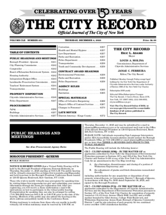 The City Record newspaper publishes notices which includes but is not limited to public hearings and meetings, public auctions and sales, solicitations and awards and official rules proposed and adopted by city agencies.