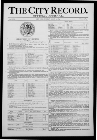 The City Record newspaper publishes notices which includes but is not limited to: public hearings and meetings, public auctions and sales, solicitations and awards and official rules proposed and adopted by city agencies. This is the City Record Newspaper for March 07, 1899.