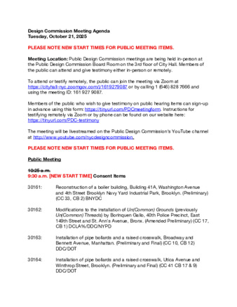Design Commission Public Meeting Agenda, October 21, 2025 (REVISED)