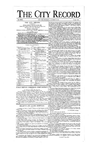 The City Record newspaper publishes notices which includes but is not limited to: public hearings and meetings, public auctions and sales, solicitations and awards and official rules proposed and adopted by city agencies. This is the City Record Newspaper for September 27, 1911.