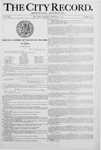 The City Record newspaper publishes notices which includes but is not limited to: public hearings and meetings, public auctions and sales, solicitations and awards and official rules proposed and adopted by city agencies. This is the City Record Newspaper for February 14, 1901.