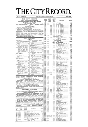 The City Record newspaper publishes notices which includes but is not limited to: public hearings and meetings, public auctions and sales, solicitations and awards and official rules proposed and adopted by city agencies. This is the City Record Newspaper for February 29, 1916 with supplement.
