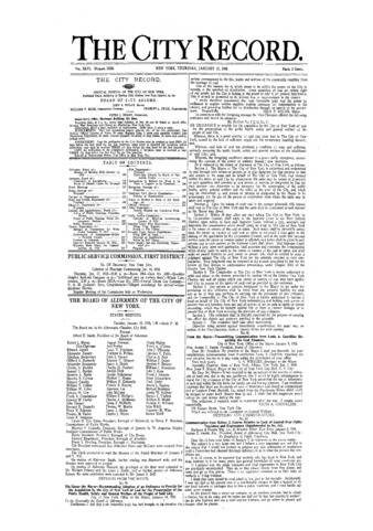 The City Record newspaper publishes notices which includes but is not limited to: public hearings and meetings, public auctions and sales, solicitations and awards and official rules proposed and adopted by city agencies. This is the City Record Newspaper for January 17, 1918.