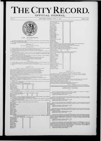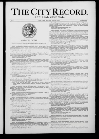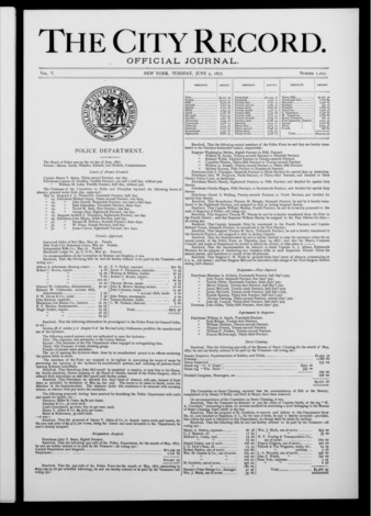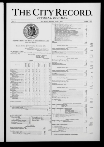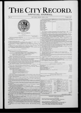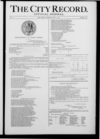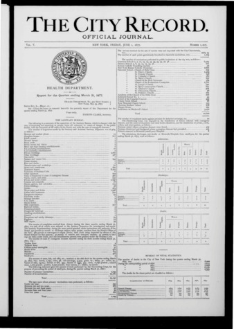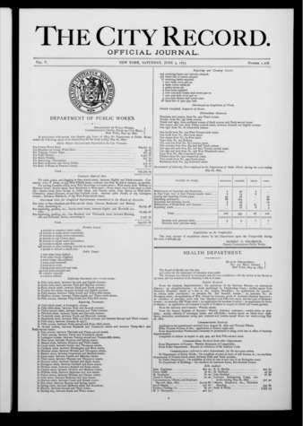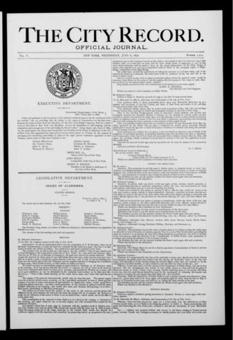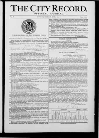 The City Record newspaper publishes notices which includes but is not limited to: public hearings and meetings, public auctions and sales, solicitations and awards and official rules proposed and adopted by city agencies. This is the City Record Newspapers for June 1877.