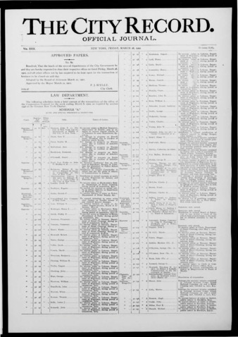 The City Record newspaper publishes notices which includes but is not limited to: public hearings and meetings, public auctions and sales, solicitations and awards and official rules proposed and adopted by city agencies. This is the City Record Newspaper for March 28, 1902.